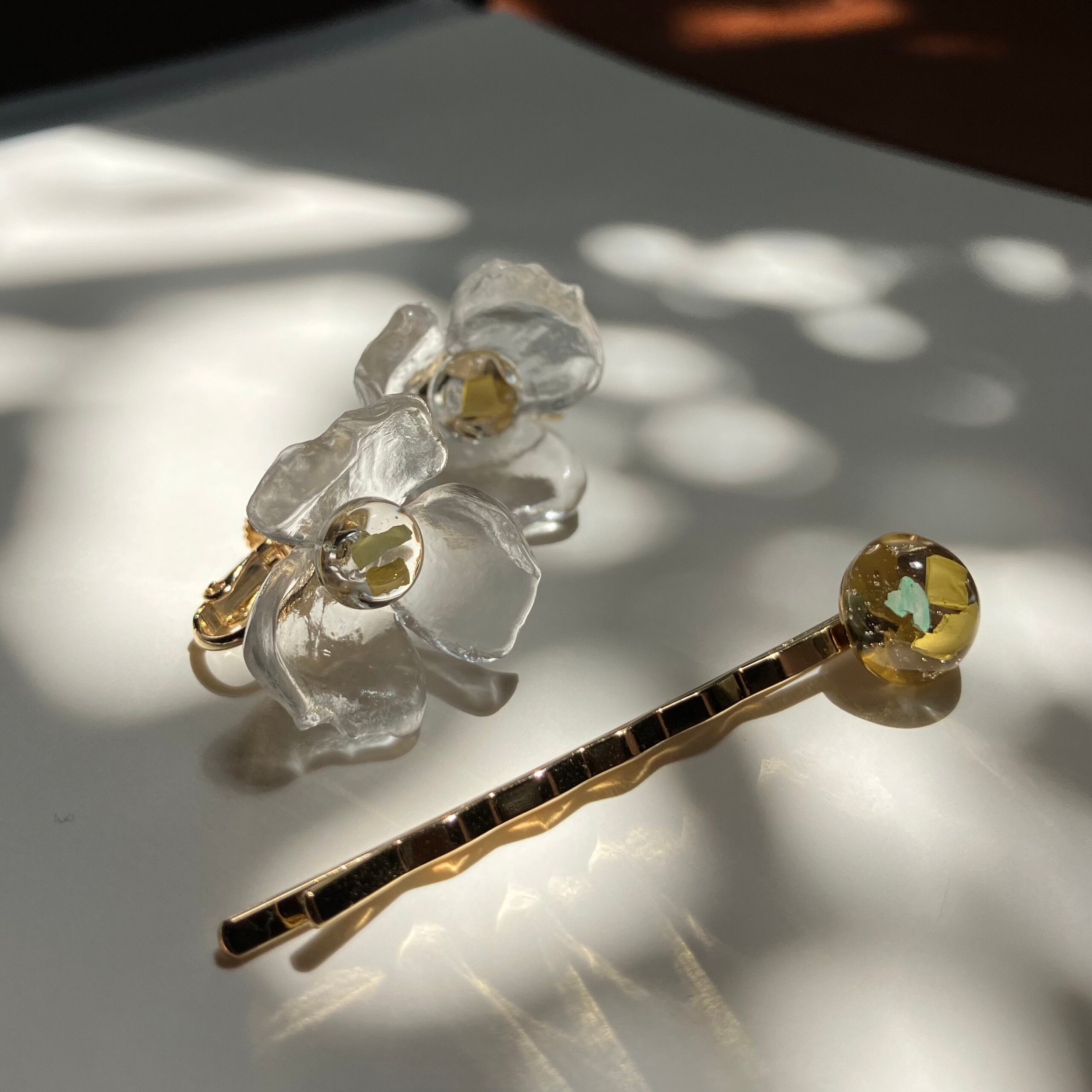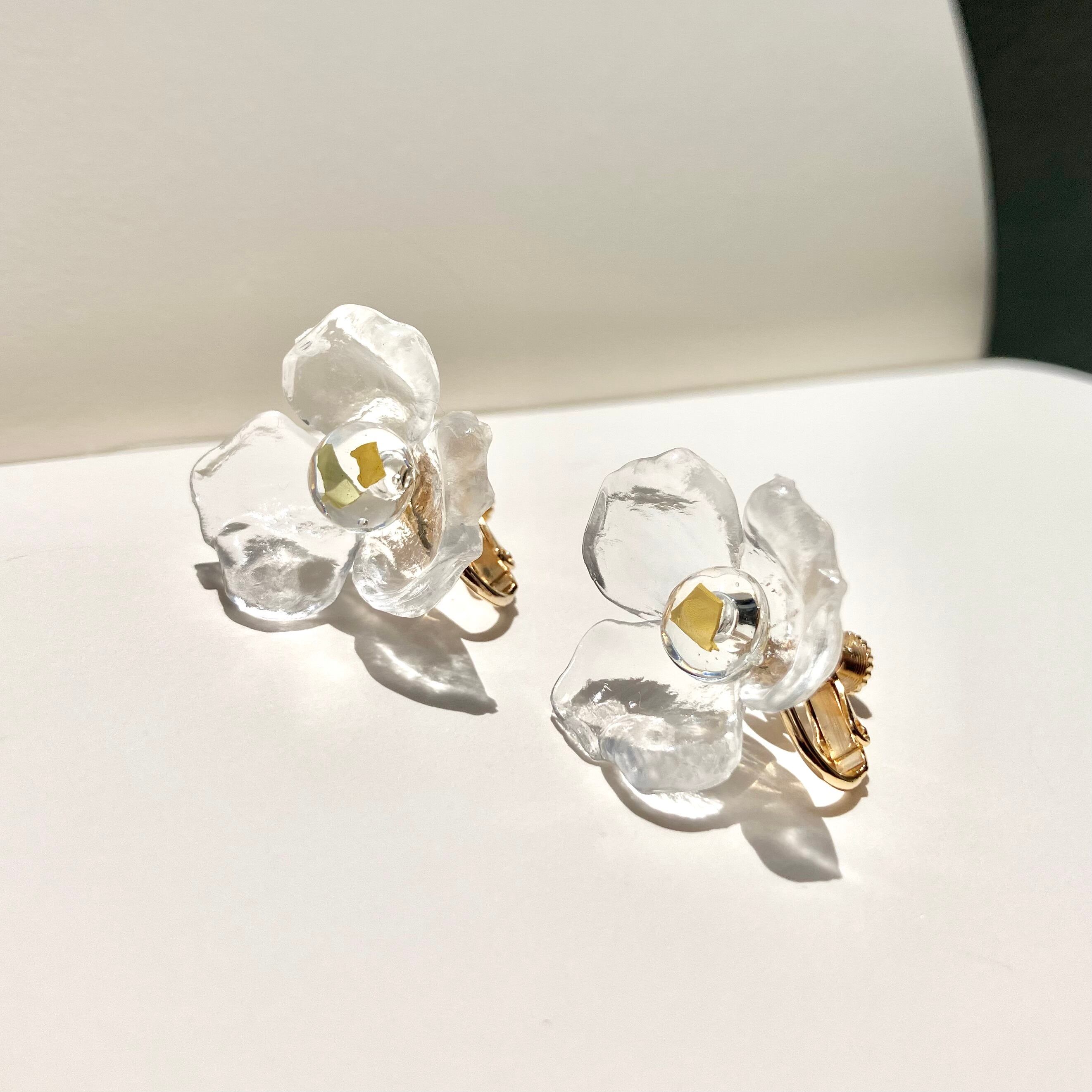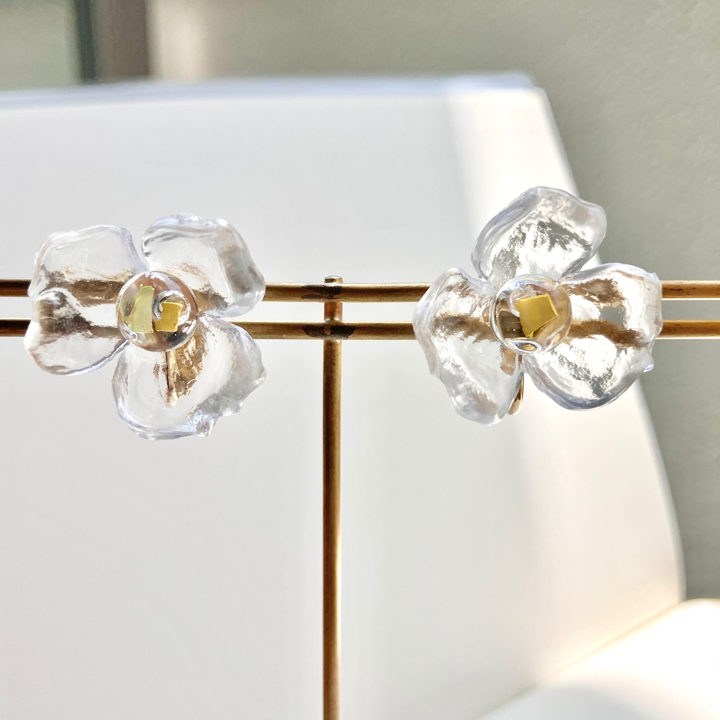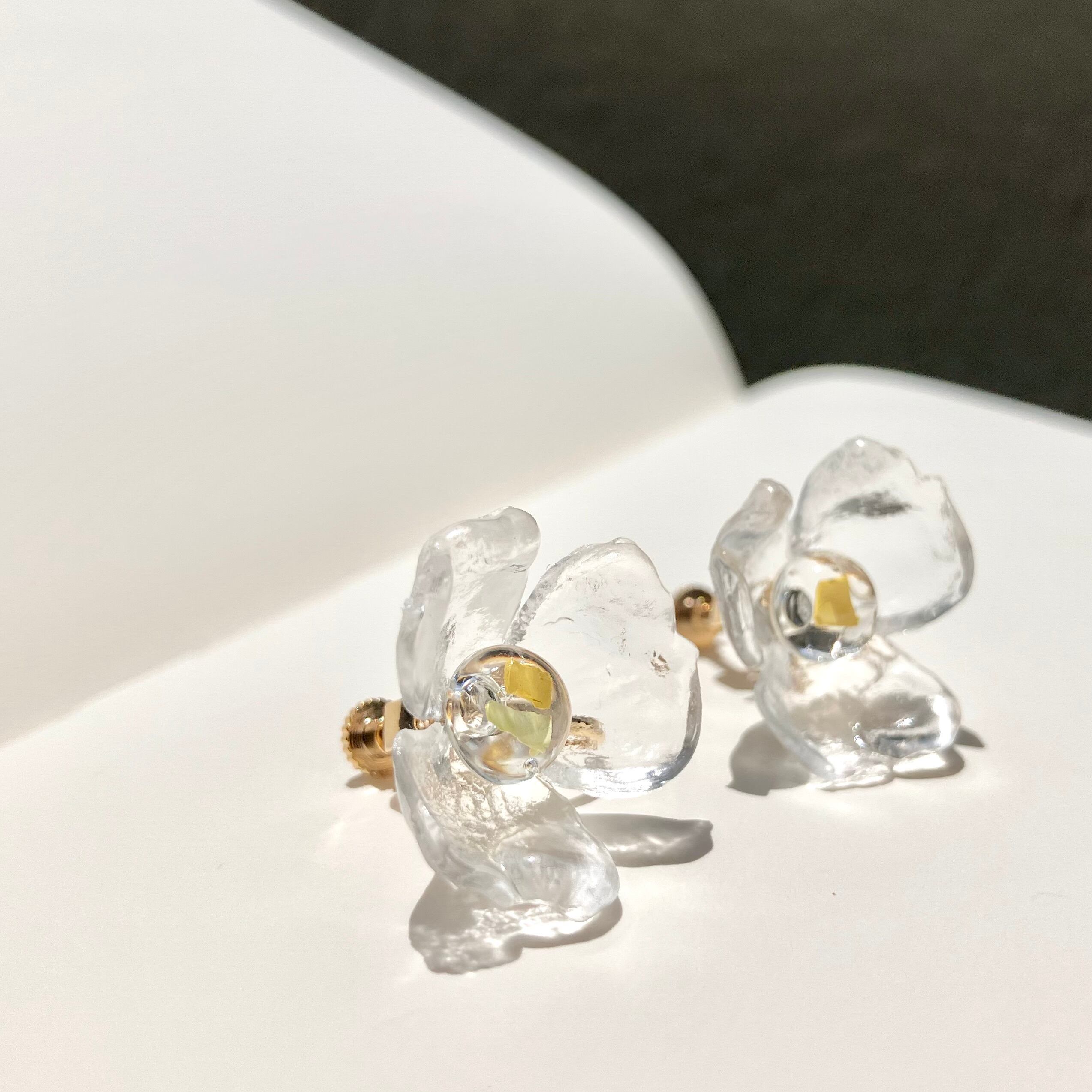光をまとった水の花のように、きらめく透明感が美しいイヤリング。