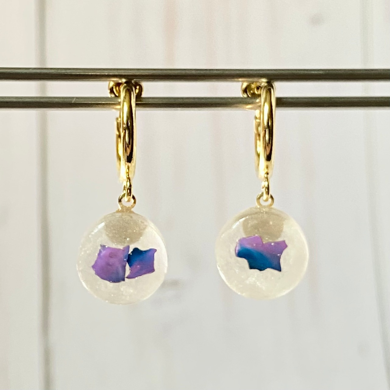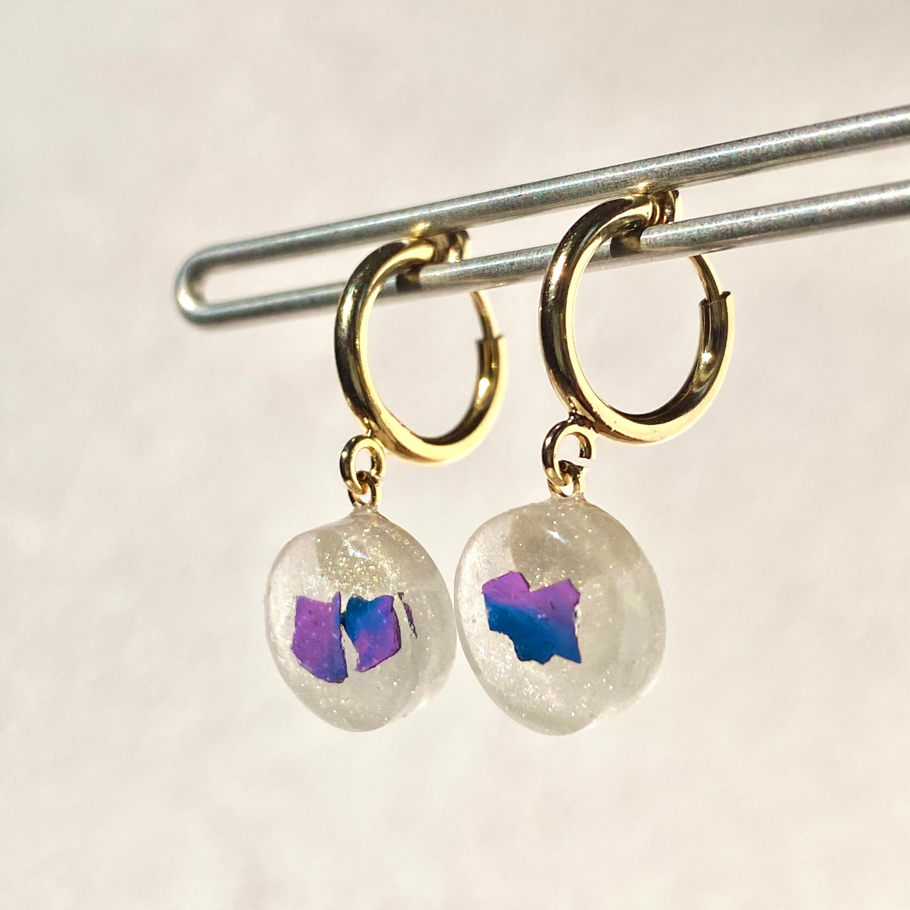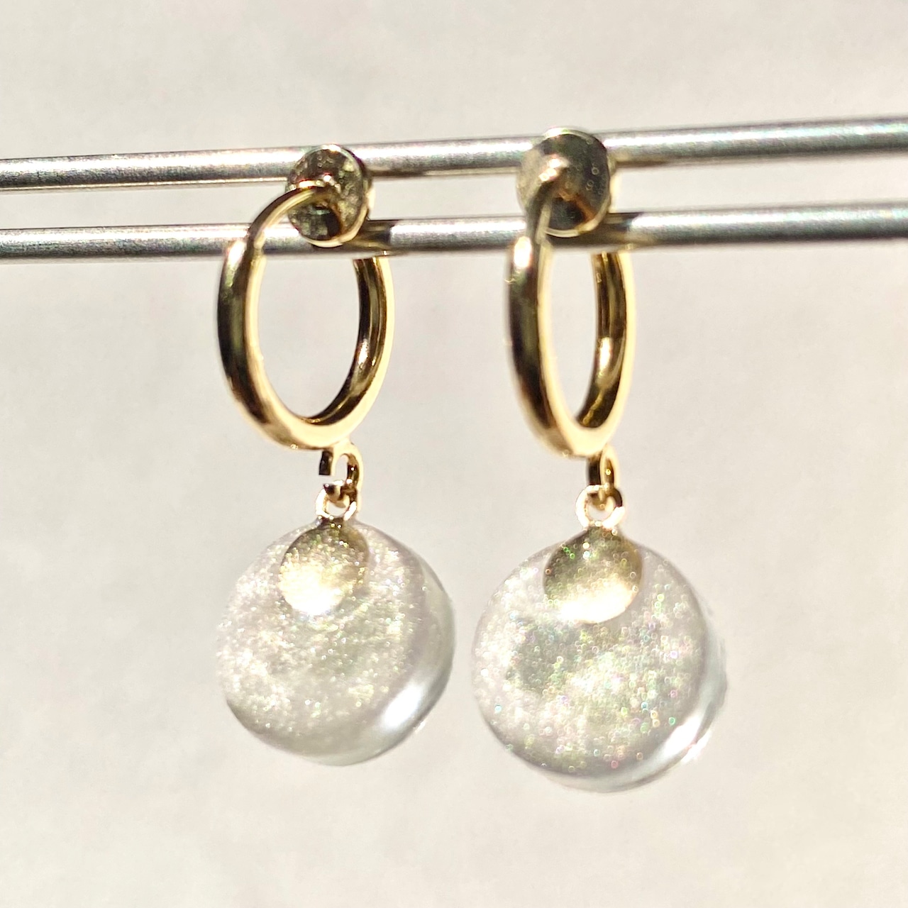 美しく変化するグラデーション、ホワイトラメの煌めき、小ぶりなサイズ感が相まって、印象的ながら使いやすいのが魅力的。