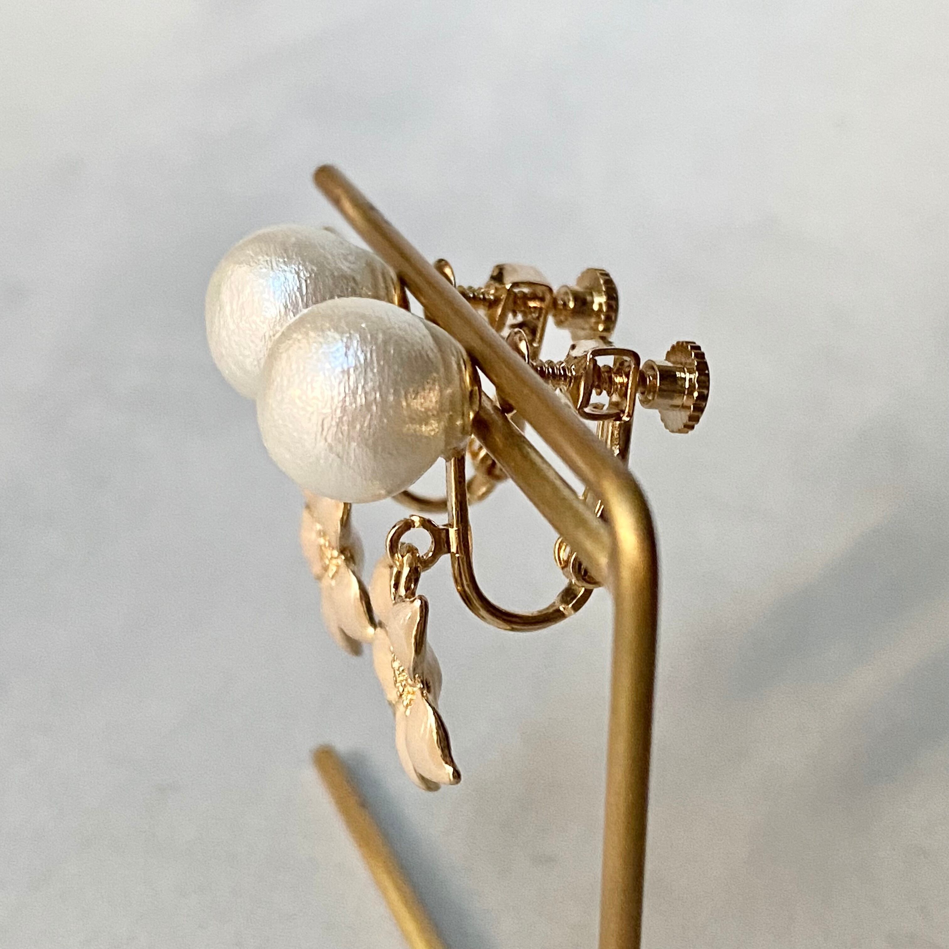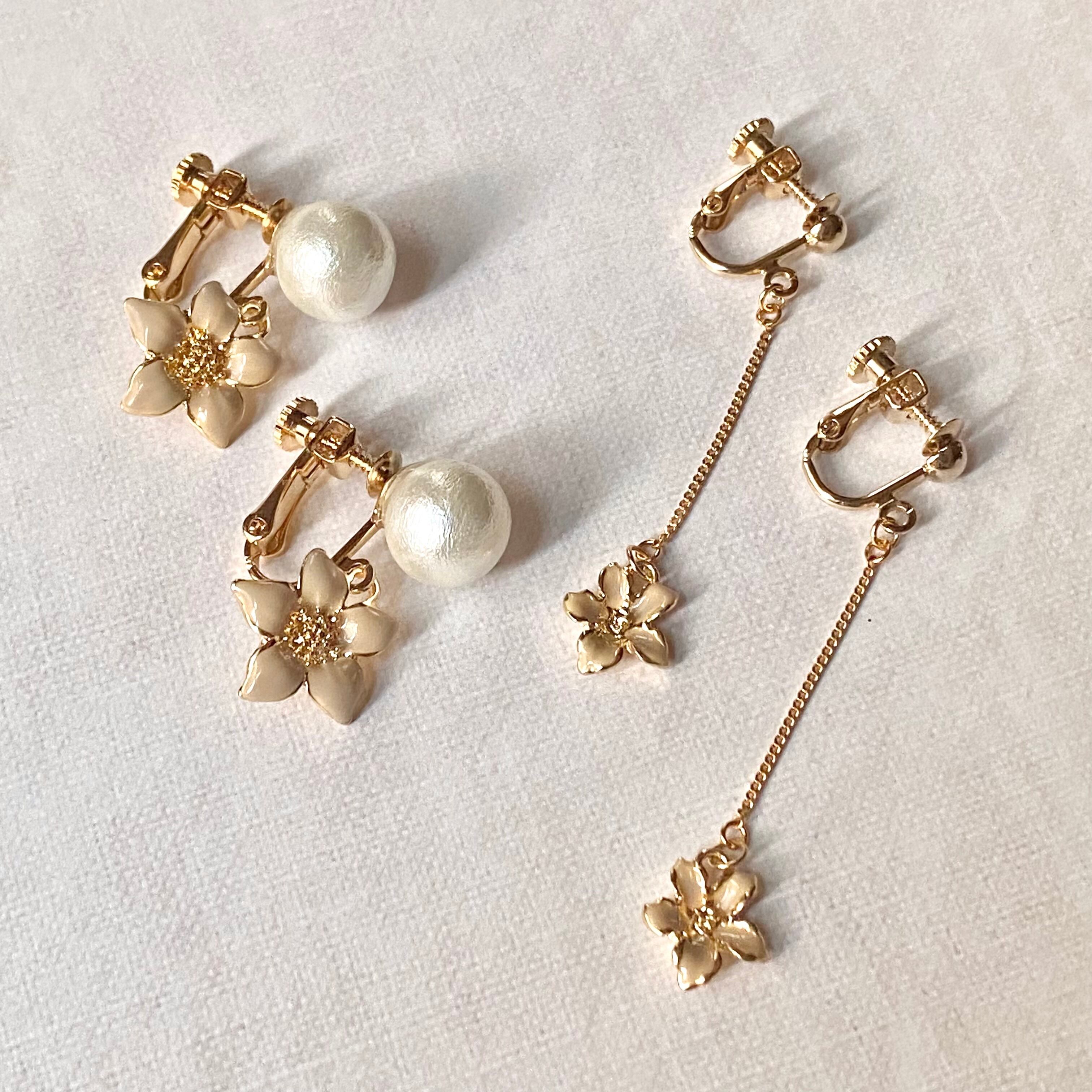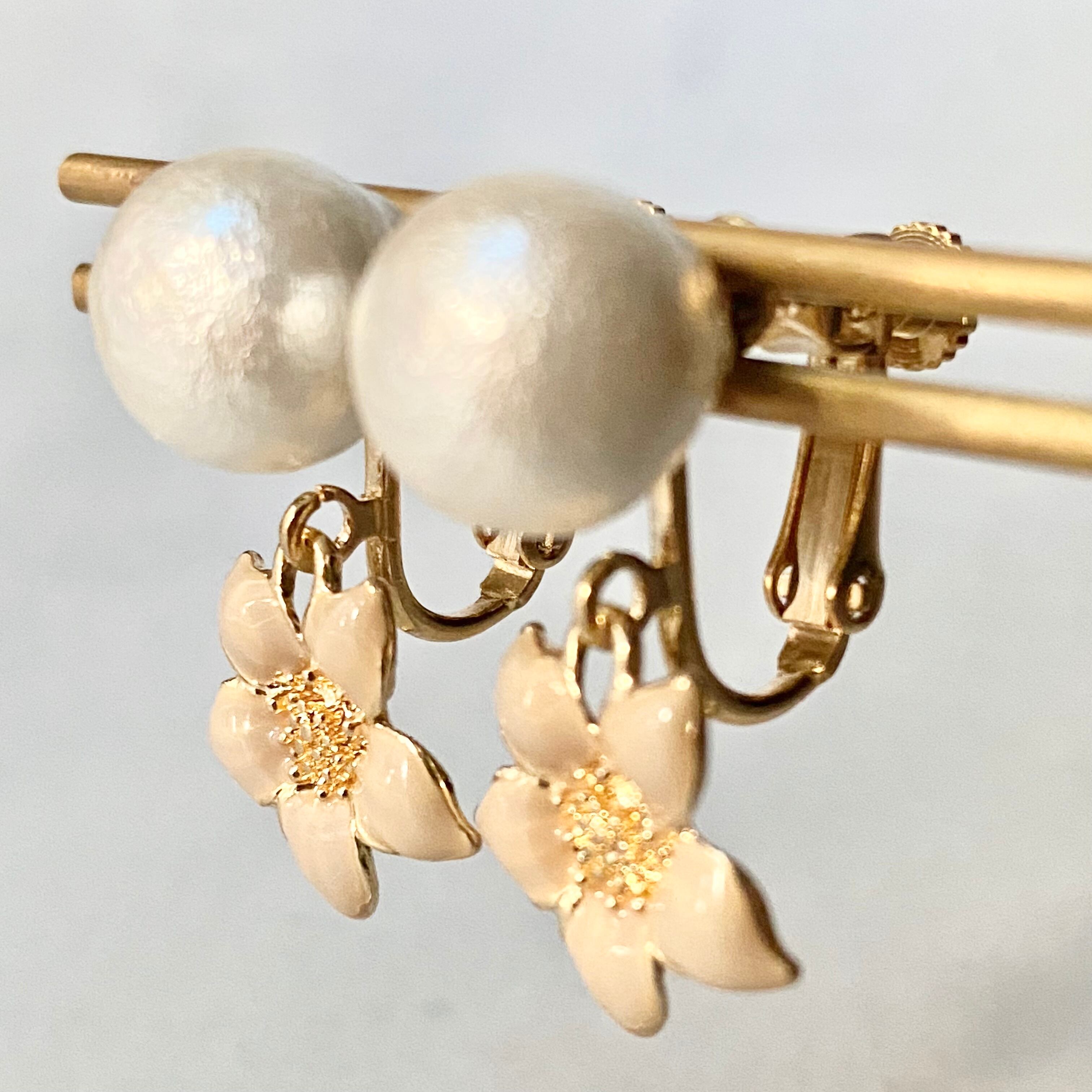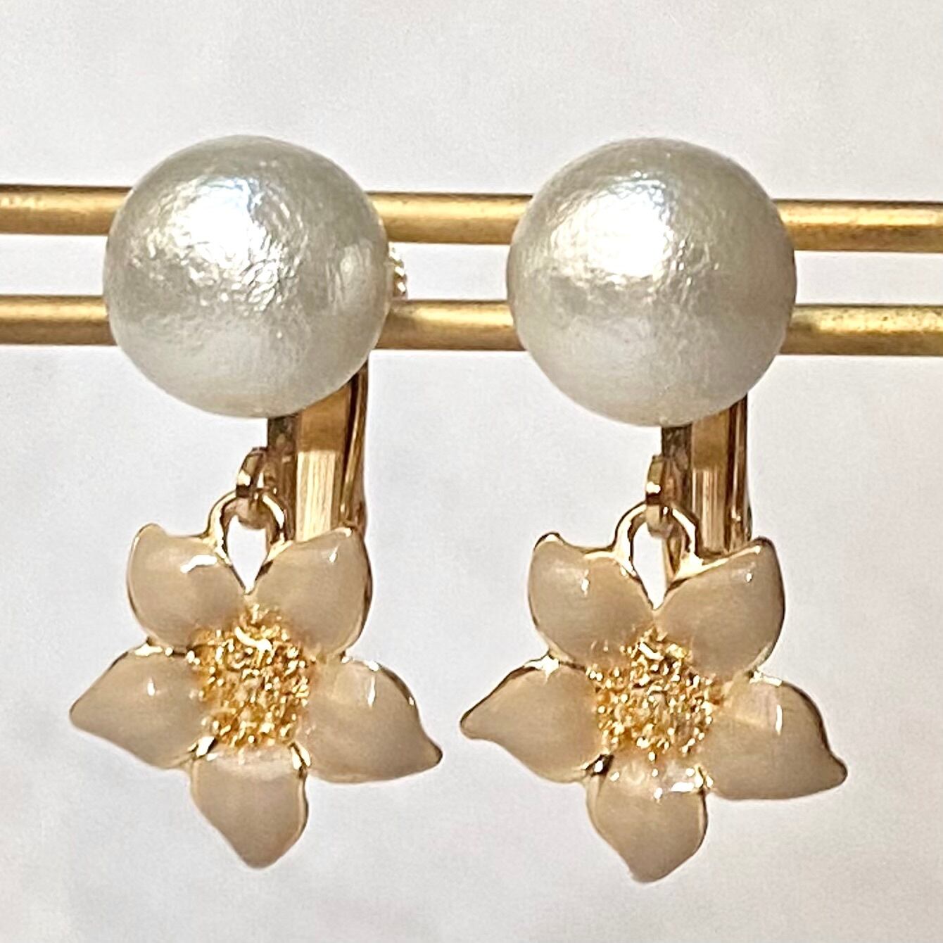 別名「クリスマス・ローズ」と呼ばれる冬のお花をモチーフに、大人っぽさと可愛らしさ、両方感じられるイヤリングです。コットンパールと組み合わせたことで、より優しい印象に❁⃘